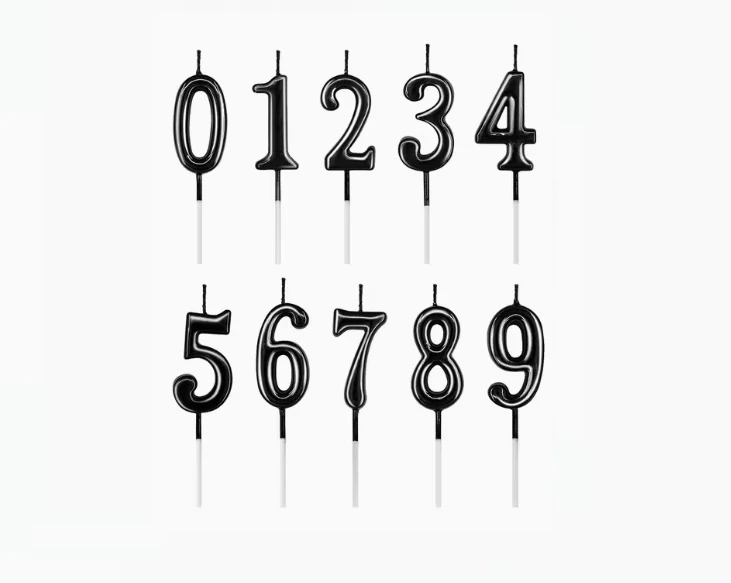 Luxusní černé dortové svíčky ve tvaru čísel – dokonalá dekorace na narozeninový dort