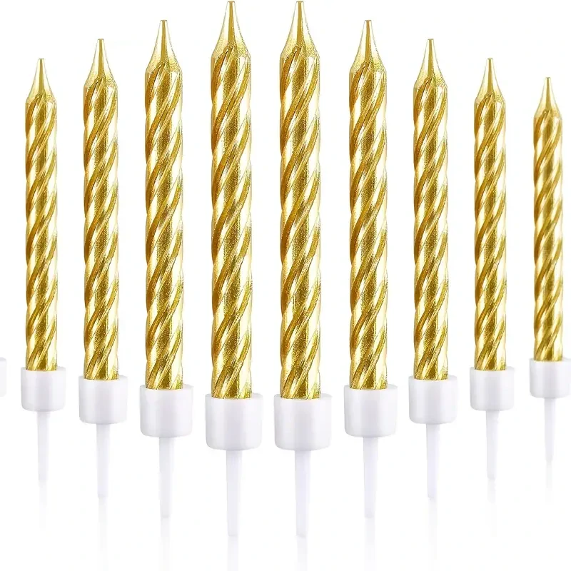 Dodejte svému dortu výjimečný vzhled s těmito luxusními zlatými spirálovými svíčkami, které zaujmou svým elegantním designem. Jsou ideální pro narozeninové oslavy, svatby, výročí, firemní večírky nebo jiné speciální příležitosti, kde chcete dodat slavnostní atmosféru.