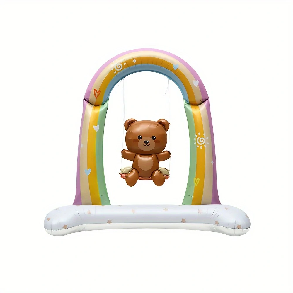 Velký fóliový balónek s medvídkem na houpačce a duhou – 100×110 cm, samostojná dekorace na dětskou oslavu