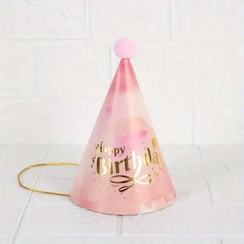 Stylové čepičky v růžových tónech s lesklým zlatým nápisem „Happy Birthday“ a roztomilou bambulkou na vrcholu. Ideální doplněk na dětské oslavy i elegantní narozeninové párty. Snadné nasazení díky pružné gumičce.